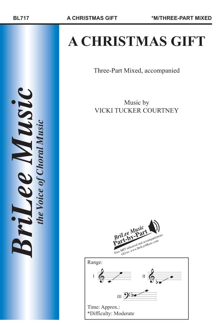Publisher: TPCatalog#: BL717Composer: COURTNEY, VICKI TUCKArranger: Voicing: SABAlternate: $1.65SKU: 51969PDF: http://www.musicalsource.com/sites/default/files/pdf/tp/BL717_A_CHRISTMAS_GIFT.pdfAudio: Full arrangement Catalog: SAB