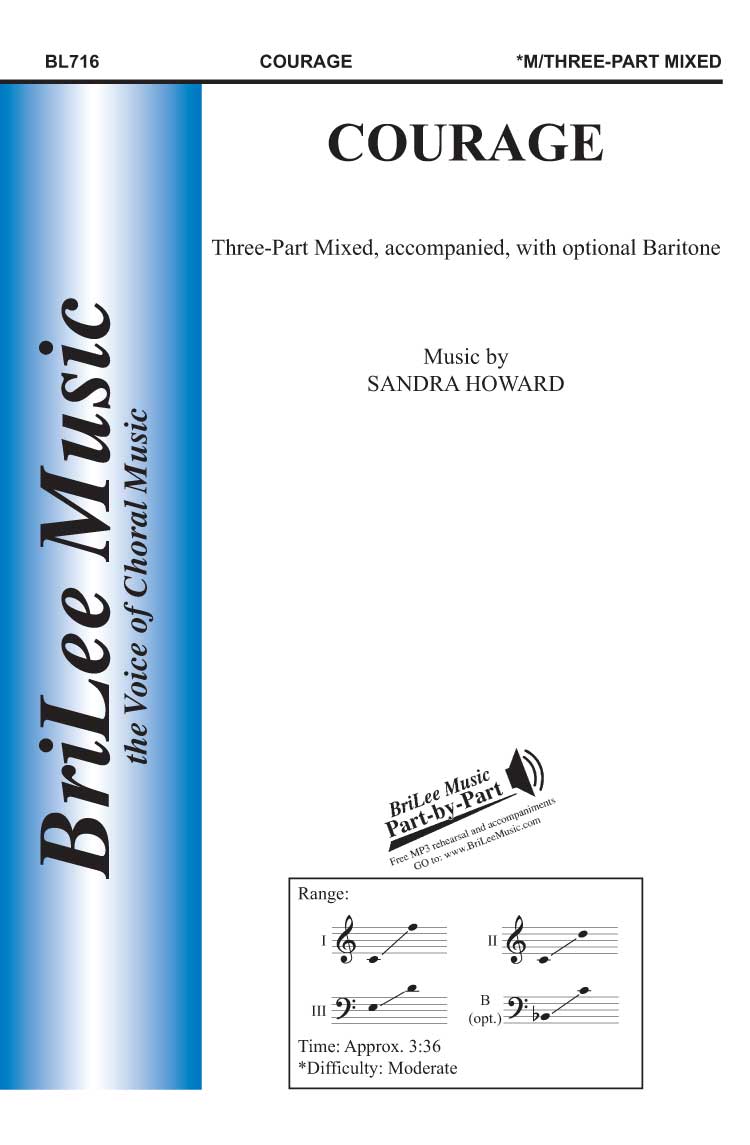 Publisher: TPCatalog#: BL716Composer: HOWARD, SANDRAArranger: Voicing: SABAlternate: DIST14MS19$2.25SKU: 51968PDF: http://www.musicalsource.com/sites/default/files/pdf/tp/BL716_COURAGE.pdfAudio: Full arrangement Catalog: SAB