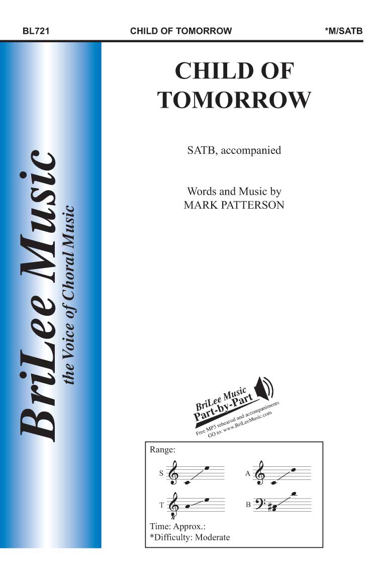 Publisher: TPCatalog#: BL721Composer: PATTERSON, MARKArranger: Voicing: SATBAlternate: $2.25SKU: 51973PDF: https://musicalsource.com/sites/default/files/pdf/tp/BL721_CHILD_OF_TOMORROW.pdfAudio: Full arrangement Catalog: SATB