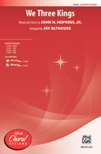 WE THREE KINGS Voicing: SABComposer: TRADITIONAL$1.80Arranger: ALTHOUSE, JAYPublisher: ALCatalog#: 00-37963Alternate: VIPPROMO12Price: $1.80